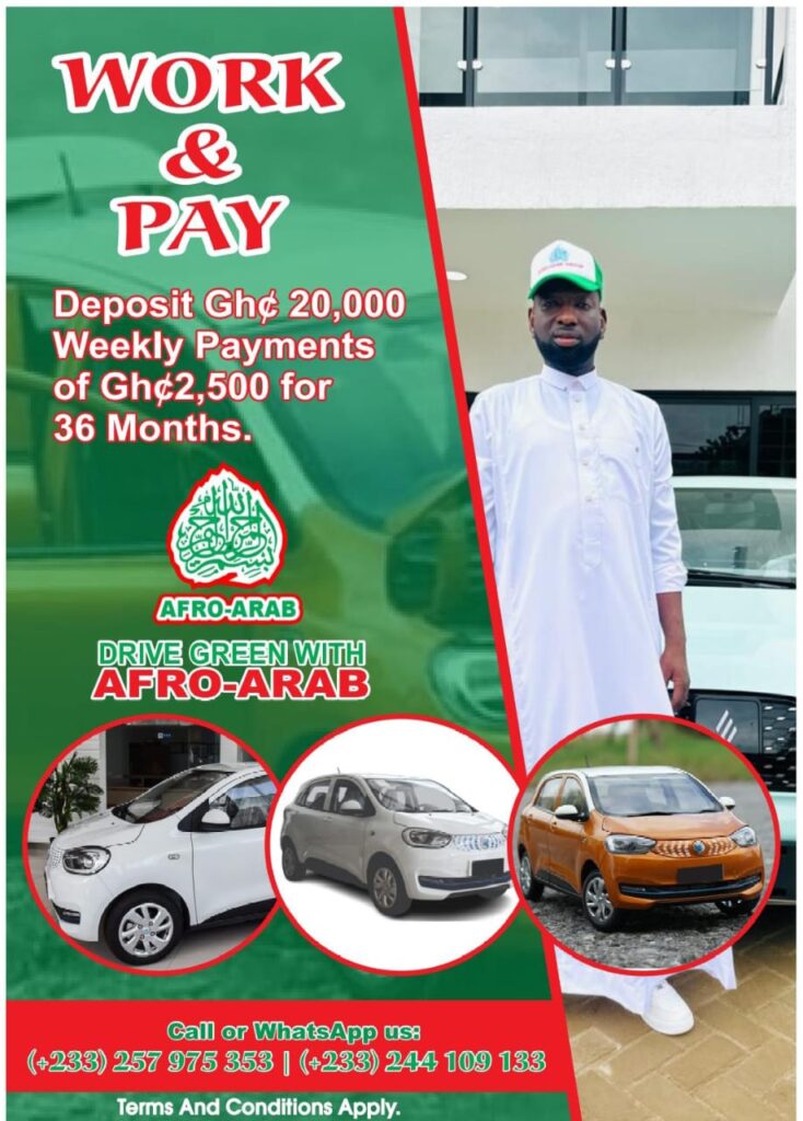 In a major boost to youth employment and Ghana’s green transition agenda, the Youth Ambassador for Peace and Development, who also serves as the CEO and Chairman of the Afro Arab Group, has announced a strategic partnership with leading Chinese automotive and technology investors. The collaboration aims to supply more than 1,000 vehicles under a work and pay model, expected to generate over 2,000 jobs for Ghanaian youth.