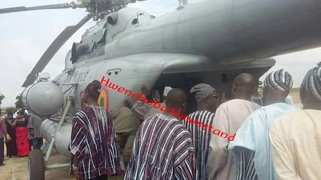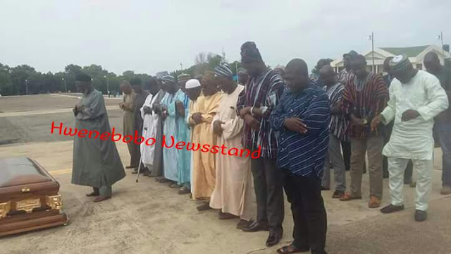 The casket containing the body of Hajia Abiba Nnaba, the mother of President John Dramani Mahama arrived on board an Air Force plane at Busunu, in the West Gonja District of the Northern Region for the burial ceremony Friday morning.